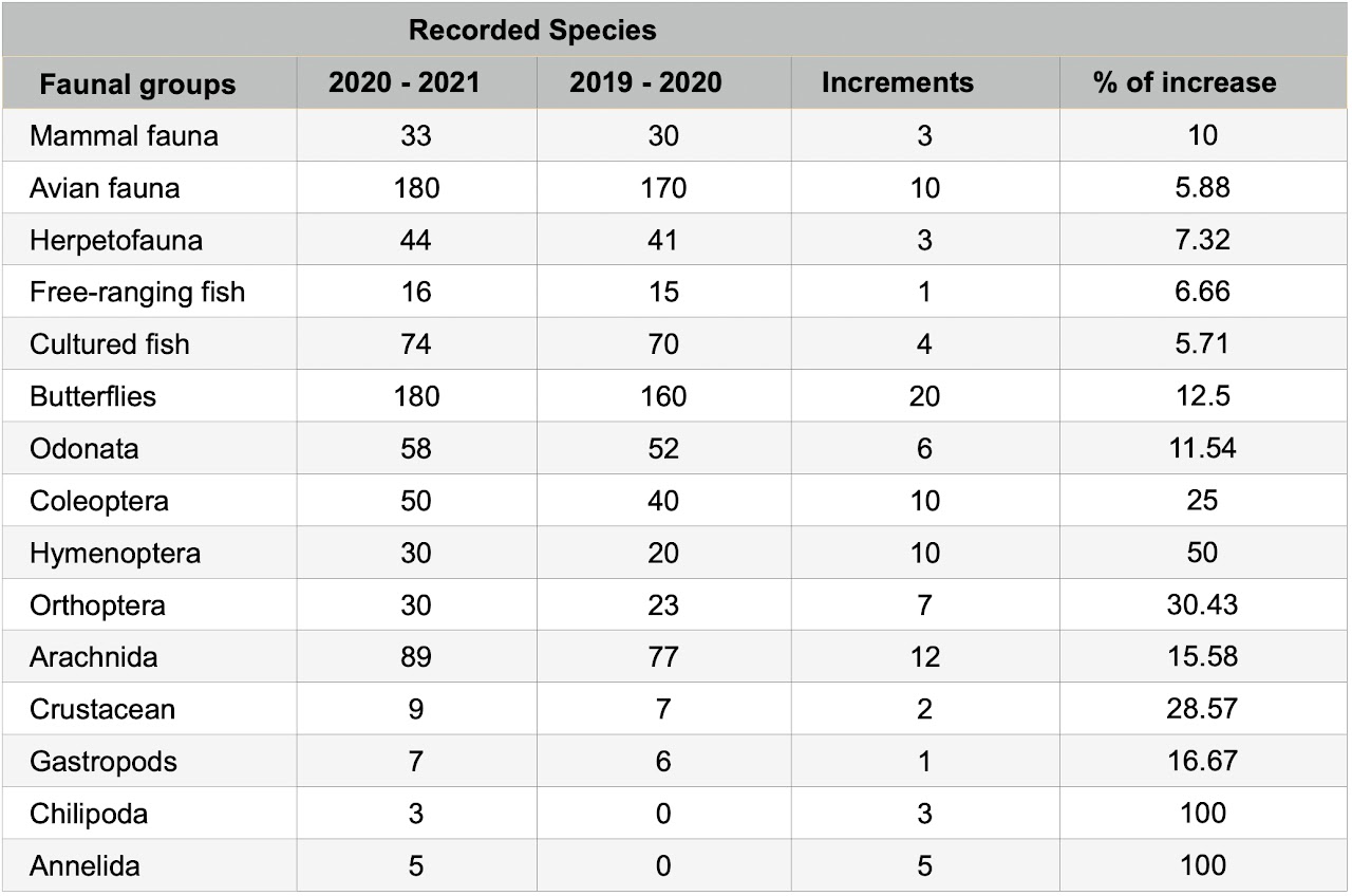 Table 1: Faunal Coverage of GU Campus